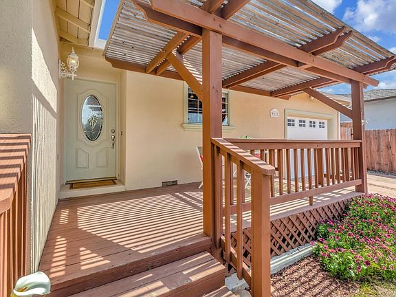 Welcome home to this ideal single story starter home near Hollister's vibrant downtown! Great curb appeal with paver walkways, colorful flowers, elevated lawn and a front yard deck & pergola that's the ideal spot to enjoy your morning coffee. Inside there's plank flooring & tile with a stylishly remodeled living room and stunning gas fireplace. The eat-in kitchen boasts oak finish cabinets, a granite breakfast bar, tiled backsplash & a gas cooktop. There are paneled doors throughout & the family room offers a beautiful entertainment center cabinet that is included with the sale. It's light & bright with fresh interior paint along with lots of recessed lighting. There are also ceiling fans & dual pane windows to help keep you cool. The rear yard offers a private wood deck that's perfect for entertaining or relaxing with friends. And you'll be making lemonade all summer long with fresh lemons from your backyard tree!. The kitchen fridge & large storage shed in the backyard are included.