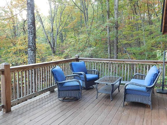 This could be the mountain retreat you've dreamed of. The views from the deck, the peaceful Smokey Mountains, and the wooded privacy are worth the drive. Two bedrooms, plus a loft, family room, and kitchen give you room for friends and family. The additional A-frame on the property has potential, but needs work. Seller has recently added 2 new mini split heat/AC units. Square footage taken from tax records, buyer should verify. Furniture remains except for recliner and table behind sofa.