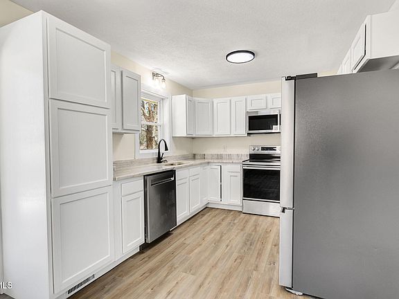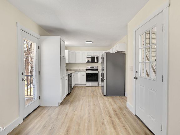 This beautifully renovated 3-bedroom, 1-bathroom home is located within the city limits, just minutes from Greeneville's shops, restaurants, and right behind Greeneville Community East Hospital. Featuring luxurious LVP flooring, white cabinets, and sleek stainless steel appliances, the kitchen is a true highlight with granite countertops. There is a room finished in the basement that could be used as a fourth bedroom, or den. The home also boasts a new roof, windows, heat pump, and completely updated plumbing, providing peace of mind and energy efficiency. Outside, enjoy a freshly landscaped yard, freshly painted brick complemented by stunning black handrails. This move-in-ready home offers the perfect blend of style, comfort, and convenience. Call today to schedule a showing!
