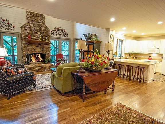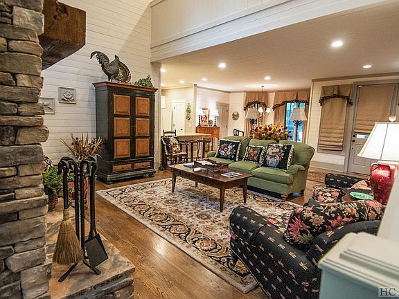 This meticulously maintained & beautifully furnished English Cotswold style home with a newly constructed 2-car garage by Bill Barber will be the envy of your friends. Sited at an elevation just shy of 4000 feet, this breathtaking home boasts an open floor plan with soaring ceilings & a stunning floor to ceiling fireplace that will allure friends & family into the inviting living area. The master on main suite features a walk-in closet & a fabulous bath with a claw foot soaking tub & walk in shower. Shiplap walls throughout add to the mountain chic feel character of this perfect home, that is decorated to the nines with beautiful furnishings & fabrics throughout. Cook till you heart's content in the light and bright French Country inspired kitchen while family & friends enjoy chats around the breakfast bar & open dining area. Upstairs, a spacious loft area is flanked by a large guest bedroom & an additional bonus room (additional sleeping area) with a beautifully tiled full bath. A fully finished lower level features an additional living area with wet bar & two additional guest bedrooms & baths. There is plenty of space for everyone here! Enjoy cool breezes from the main level deck or take a nap on the screened lower level porch while listening to the sounds of nature in this peaceful & lush setting. Enjoy telling tall tales while toasting marshmallows around the newly constructed fire pit. This home has it all & has not been used as a rental so it is not worn! Offered beautifully furnished (a few exclusions apply) with a full golf membership ($50,000) included in the sale to the new buyers to upscale Trillium Golf and County Club. Trillium offers appealing amenities such as a great indoor tennis facility (clay courts!), fitness center (both close to this home!), golf, lake club, garden golf, outdoor pool and a clubhouse. Come see why so many people are leaving the stresses of city life and heat for our slice of heaven on our special mountain plateau.