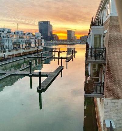 The best of city living on the water, all in a gated community. Five meticulously maintained floors with views of the water from every level. All levels accessible by elevator. Generous size his/her walk-in closets & MSTR lvl laundry. Skyline and water views from the spacious private roof deck.Balcony off every level.2 Car garage w/large storage closet and 2 car parking pad.