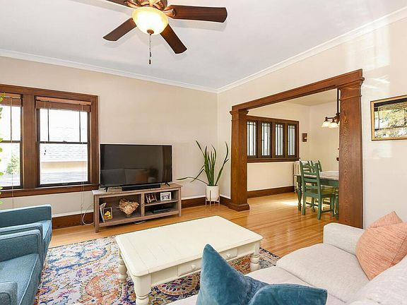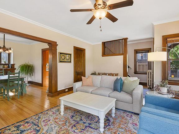 Absolute charmer in East Harriet. Walk to Lake Harriet in 3 short blocks, great neighborhood restaurants and shops. The main floor has loads of windows and natural light flooding the living room, detailed trim and molding, built in buffet in the dining and a fantastic kitchen with extra cabinetry. The upper level has two nicely sized bedrooms, newer windows, central AC and a very nicely updated bathroom with heated floors. The basement has a large flex space with ample storage and a 3/4 bath. Do not miss the oversized tandem garage, it fit's 2 full size SUV's with room for door opening, garbage bins and extra storage and EV charging hookup. Pet friendly fenced in backyard with paver patio!