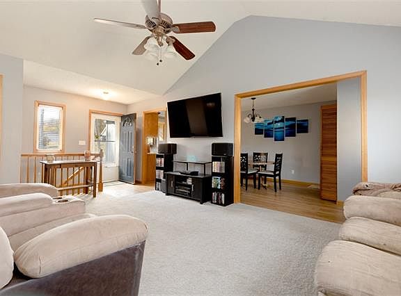Fresh, Open and Move-in Ready. Affordable & Rare Raised Ranch with main floor laundry. 3 bedrooms, 2 full and 1 half bath, complete with FULL length 2 car garage, finished lower level with 1/2 bath (Less Flooring), HUGE fenced back yard, COMPLETELY NEW Air Conditioning System Installed in August 2022. NEW carpet installed on November 16, 2022 in Great Room, Hallway and steps to the lower level. Seller says wall (Professionally) mounted flat screen TV's (4 units) STAY with property. Check it out, before it's gone.