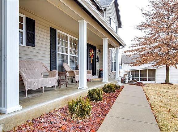 Exquisitely kept 2 story in one of the hottest areas of Wentzville! 3,100+/- sq feet of total living area await!Fantastic cul-de-sac living minutes from schools, shopping & Hwy 70! Fresh landscaping & immense front porch! Upon entering, find a wonderful 2 story foyer w/freshly carpeted living room & newer hardwood in large separate dining! Open floor plan to the rear w/upgraded tile floors, breakfast room, upgraded lighting, bay windows & wood burning fp! Kitchen boasts center island w/plenty of counter space, large pantry overlooks rear patio w/fenced yard, custom landscaping pavers & above ground pool! Upstairs has 4 generously sized bedrooms. Master suite has an enormous walk-in & master bath is freshly painted w/new fixtures & separate tub/shower! Need a man cave? Head downstairs & there's the perfect finished space for home theater, bar area or play area for kids! There's still plenty of storage w/a rough-in bath complete w/everything you need to finish it! (included with sale!)