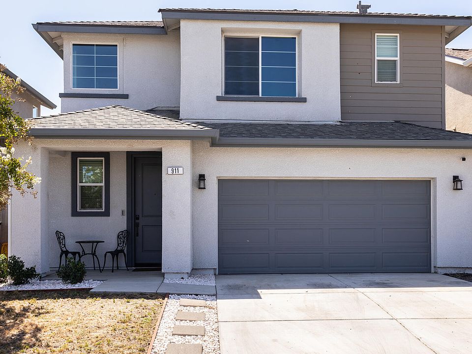 Built in 2022, this 3-bedroom, 2-bath, two-story home in Visalia's Woodside Huckleberry neighborhood offers modern comfort and efficiency. Featuring nearly 1,500 sq. ft. of open living space, this home includes a bright kitchen, spacious bedrooms, and a low-maintenance backyard with turf. Energy-conscious buyers will appreciate the leased solar system. Conveniently located near shopping, dining, schools, and parks, with easy access to highways and just a short drive to Sequoia National Park. A perfect blend of style, function, and location—ready and waiting for you!
