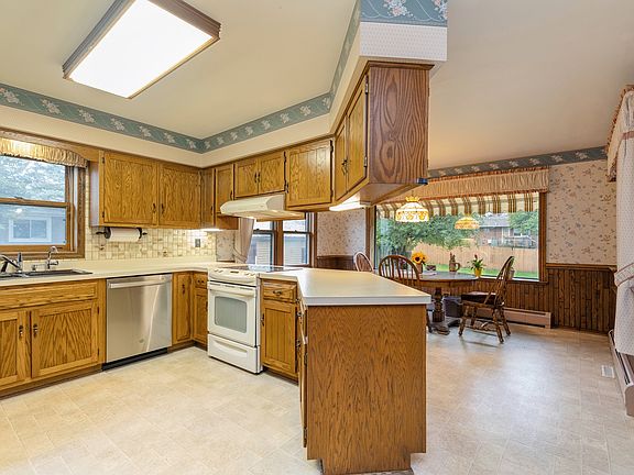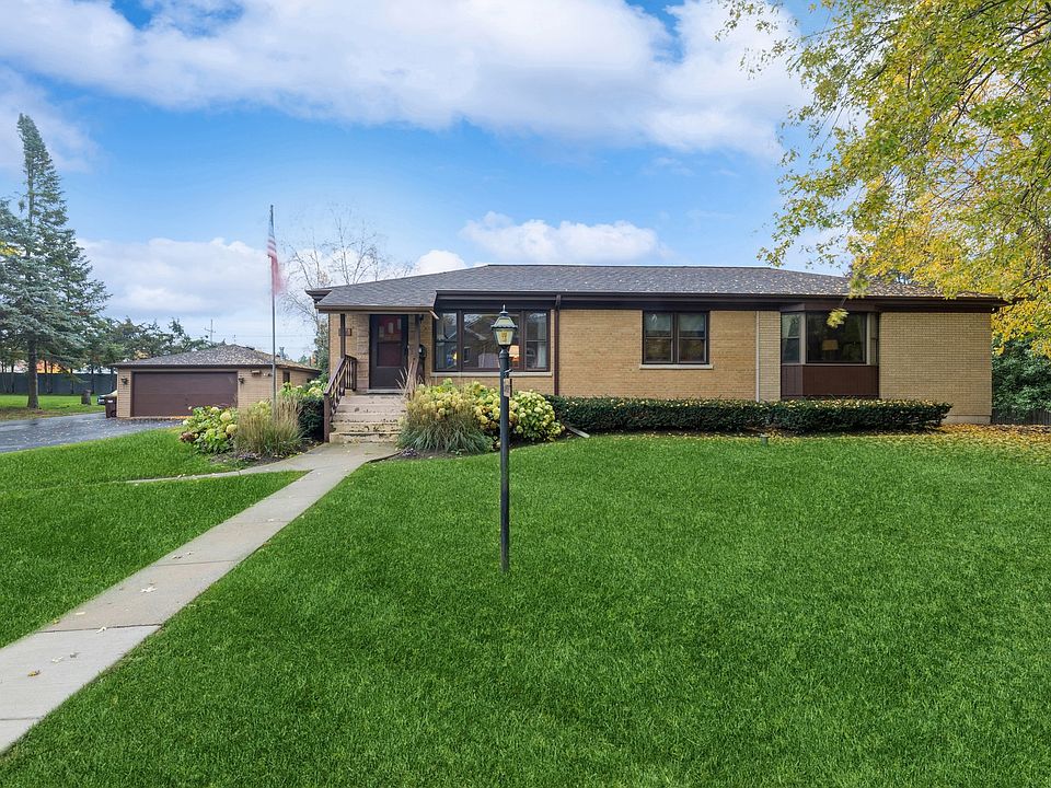 Welcome Home! This home is a solid brick ranch with a full basement. 2 1/2 heated car garage that could hold up to 4 cars, along with a shed off the back of the garage. As you walk into the home you have a large living room with a picture window. An open kitchen with an attached dining area. Dining area has a large window with an awning outside overlooking the beautiful backyard . Kitchen area has plenty of cabinets with under cabinet lighting, pull out drawers and lots of counter space for cooking and entertaining. Newer refrigerator and a brand new dishwasher. Master Bedroom is large enough for a sitting area along with an enclosed porch off the back. Walk in closet and full bathroom with the laundry room off the master bedroom bathroom. Making laundry very convenient. Two other bedrooms and a 1/2 bath are on the main level. Basement has a recreation room with a wet bar and a additional family room that has a gas burning fireplace, another 1/2 bath and shower are in the basement along with a utility room and laundry room. There is a door in the laundry room that has a cold room great for canning or a wine cellar. The basement could easily be used as extra income with the separate entrance door. Owner used to own a heating and air company for many years so they have gas forced air and boiler, wood burning heat throughout the home. Home has central air and reverse osmosis. House is on at least a half acre with a partially fenced yard. Bring your ideas and call this home. Close to shopping, restaurants, lakes, state parks and much more. Home is being sold "as is".