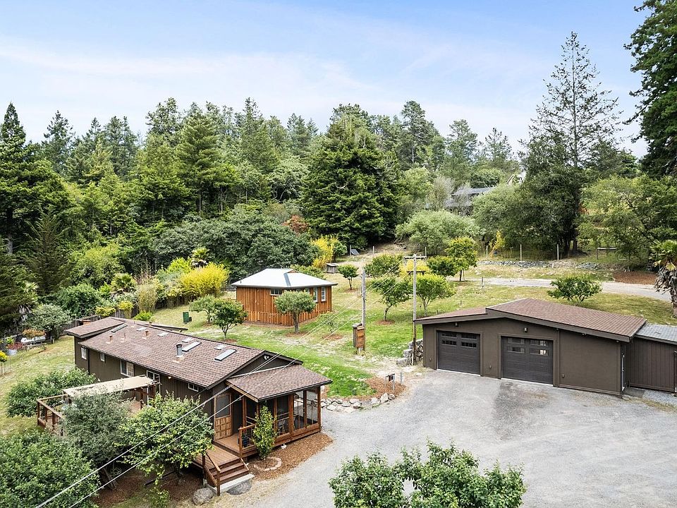 Discover the epitome of charm and tranquility in this lovely 2 bed 2 baths home, nestled at the end of a serene street. From its vaulted ceilings to its newly remodeled features, this home exudes elegance and warmth at every turn. Also included, a remodeled guest house, a spacious garage and workshop, and over 20 fruit trees, this property offers a unique blend of modern comfort and natural beauty. The heart of this home lies in the well-appointed kitchen, boasting quartz countertops and newer appliances. The quartz countertops provide a sleek and durable surface, perfect for preparing meals and entertaining guests. The modern appliances ensure that every culinary endeavor is met with ease and efficiency, making this kitchen a dream for any home chef.Remodeled bathrooms are a testament to luxury and comfort. With tasteful design choices and new fixtures, they offer a spa-like retreat where you can unwind and rejuvenate after a long day. Step outside into the expansive backyard, where you'll discover a updated guest house wrapped with redwood milled from the property. Remodeled in 2022, this charming addition provides the perfect space for accommodating visitors or could be used as a home office/studio. The property also features a large garage/workshop. Escape to Paradise!