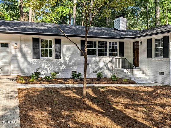 Fully renovated one-story living in the heart of Cary, NC. The open kitchen, living, and dining space welcome you with vaulted ceilings. French doors lead to a dining room or optional office. LVP floors throughout are waterproof and low maintenance. This is one of the few opportunities for a like-new brick ranch less than a mile from Downtown Cary.
