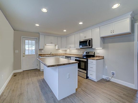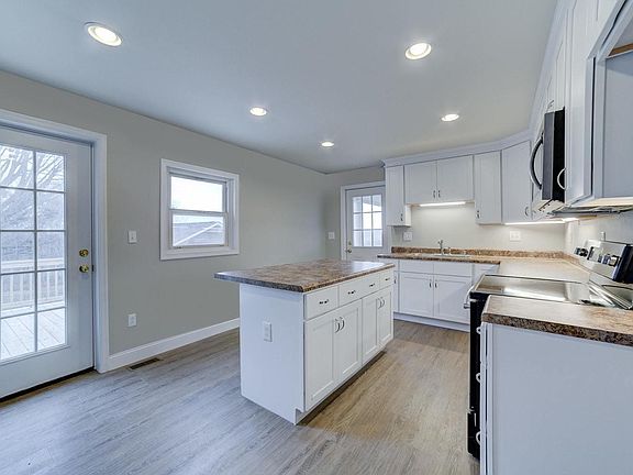 Completely remodeled & updated. Brand new Kitchen, new cabinets, new flooring throughout home. Large new deck. New heat pump! New drywall/paint, new electric. Brand New Bath & New Tile. Nice 2 car workshop! Perfect starter home! Great location less than 10 minutes to Rocky Mount. One level living with bedroom, laundry and carport on entry level. 2 bedrooms on upper level. Large kitchen with dining area, living room, dining room, office area. Paved drive 16 x 25 carport, 20x32 detached garage. nice level, gentle lot. New well pump 2018 Updated septic 2012.