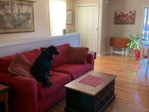 Airy and sunny 2nd floor, privately accessed 1 bedroom apartment, attached to our home, comes with bedroom with queen size bed, living room with pull out couch, full kitchen with dishwasher, ample storage, a deck overlooking in ground salt water pool and hot tub in suburban neighborhood. Outdoors you will find an acre yard filled with fruit trees, blueberry bushes, raspberry and blackberry bushes, and grape vines and a screenhouse. Off street parking. 15 miles east of Providence, 40 min from Cape Cod, 30 min from Newport and commuter rail to Boston 5.5 miles east. Monthly rent required.