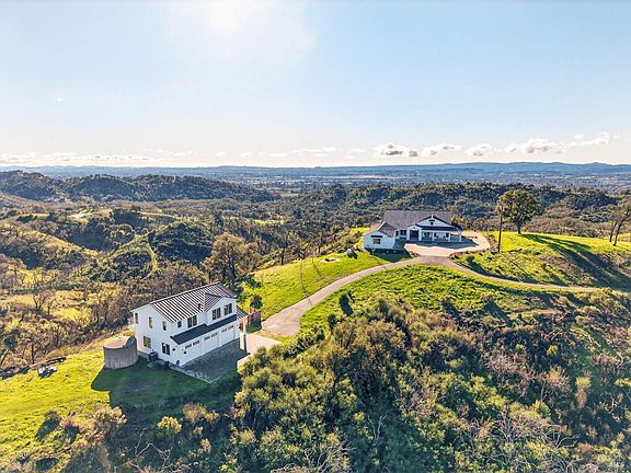 Don't miss this truly exceptional Healdsburg estate, offering gated, private living on one of the most coveted roads in the area. A private bridge crosses a seasonal rocky creek, leading you into a serene, park-like setting where an enchanted pond with swimming and boat docks is framed by mature trees and a fenced orchard garden. Nearby, a newer RV creates the perfect hub for weekend campouts, swimming, barbecues, volleyball, and lakeside relaxation. Continue up the drive to the recently built modern farmhouse, completed by local builders in 2023. Inside, soaring ceilings and expansive walls of glass capture breathtaking, uninterrupted panoramic views from every room stretching across the Mayacamas, Mt. St. Helena, and rolling vineyard-lined valleys. The main residence features four bedrooms and three-and-a-half baths, a stunning great room, expansive outdoor decks, and deep garages with a large motor court ideal for car enthusiasts and entertainers alike. An adjacent ADU offers two bedrooms and two baths, its own fireplace, and equally impressive views, positioned above an expansive six-car garage and workshop. Set on approximately 100 acres with thoughtful improvements throughout, this rare wine country offering combines privacy, recreation, and refined living. A truly special property awaiting its next discerning buyer!