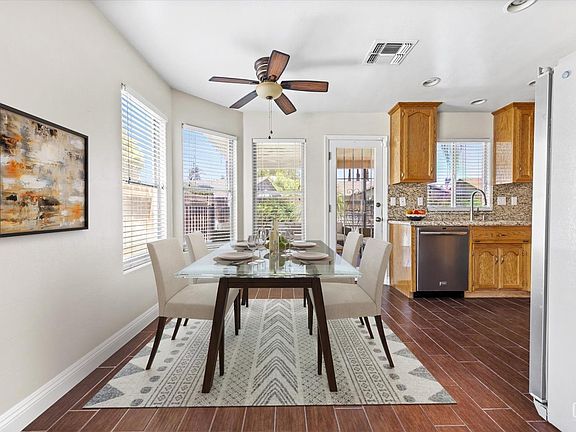 Calling all first-time home buyers and those ready to downsize! This cozy 3-bedroom home may be perfect for you! The floor-plan features a great room complete with a fireplace. Step into the kitchen, the heart of your new home. It showcases granite counters, a pantry, and a nice size breakfast nook. Stainless steel appliances include a gas range, microwave, dishwasher, and a refrigerator. Doing dishes is more enjoyable with a view of your sparkling pool! Imagine relaxing by the pool while enjoying a cool drink on a sunny afternoon. The primary suite has a walk-in closet and two sinks in the bathroom. Tile plank floors and the indoor laundry area makes cleaning and chores a breeze. Your new chapter begins here. Make an appointment today and make this dreamy haven your reality.