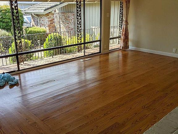 Actually this is a 4 bedroom/2.5 bath large house with a big front/side/back yard. Hardwood floor on the living room, family room, tile floor on the kitchen and dinning area and carpeted in all bedrooms. Central force air with A/C.