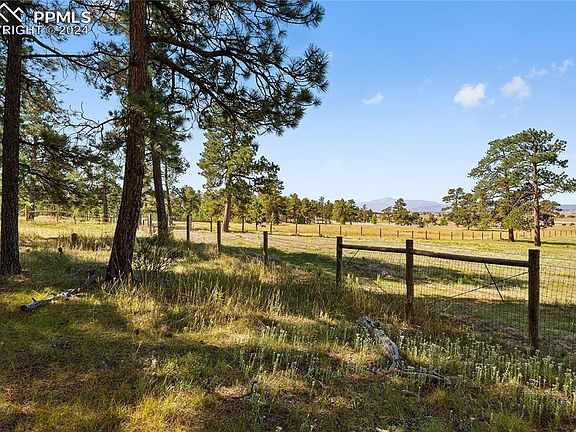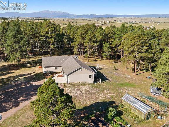 Black Forest tranquility awaits you! Perfect blend of mature towering ponderosa pines and lush green meadows on 15 acres with end of the road privacy, mountain views from the acreage and a remodeled custom rancher built in 2010 w/ 3,334 square feet, 5 bedrooms, 3 baths. Finding a property w/ 15 acres is a rarity. There is no HOA and the property is subdividable so there is a ton of future value potential for a savvy purchaser or potential to create your own compound with multiple homes. The acreage is stunning and would give the ability to create additional home sites with walk-out basements, trees and mountain views. The property is bordered by larger acreage properties ensuring your privacy. Zoned for horses, chickens, livestock or any other animals as well as any outbuildings you would like to construct. Newly constructed 2 stall loafing shed with fenced pasture, water, green house, chicken coop and a large hay field. The interior of the home is bright and welcoming. Three main level bedrooms including primary and two lower level bedrooms. Kitchen w/ upgraded hickory cabinetry, pantry, newer stainless appliances including a gas range, oak hardwood floors. Spacious great room with gas stove, stone surround and a custom mantle made from trees on the acreage. Main level primary suite with hardwood floors, tongue and grove hardwood wall, attached bath featuring a shower and new vanity with butcher block counter, above mount sinks and new plumbing fixtures. The lower bath has metal accents, neutral subway tile, butcher block counter, above mount sink and a stylish claw foot standalone tub. Expansive family room w/ luxury vinyl plank flooring, metal beam accent, gas stove, future wet bar area with plumbed sink w/ wood accent wall which could be used as a craft area as well. Large composite deck which is great for entertaining overlooking the trees. Finished and insulated over-sized garage. Award winning School District 38. Quick commute to Colorado Springs or Denver.