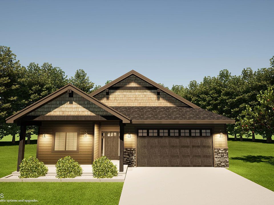 Highly desirable location of The Fields that is just minutes away from Honeysuckle Beach/boat launch, Marina, Recreation Trails, Country Club, Golf Courses, mountain biking, hunting, multiple parks, retail stores, restaurants, schools, highway access, and more. This property has 3 bedrooms and 2 bathrooms, and features an 18' covered front porch. As you enter through the stained and lacquered, 3-panel knotty alder, 1/4 light entry door, you'll experience a 6' wide entry leading you to the vaulted ceilings in the open concept dining, living, and kitchen area with LVP flooring and oversized 5'' base trim. The gourmet kitchen has a large walk-in pantry, GE Stainless appliance package, island with eating bar, pendant lights above, custom European Beech mission-style cabinets, granite/quartz countertops, and full tile backsplash. The private primary suite features dual raised vanities with granite/quartz counters and matching backsplash, tiled shower surround with granite/quartz corner shelves and glass door, linen closet, and walk-in closet. The interior has solid core craftsman 3-panel doors, full wood warp windows in entry/great room, extra plush 8lb carpet pad in the bedrooms, and a spacious mudroom/laundry. Outside, you'll be impressed by the various accents of cultured masonry stone, siding details, exterior paint with 2 body colors and separate trim color, 8" tall insulated metal roll-up door with ultra wood grain finish, smart garage door opener with wireless keypad entry, garage man door to outside, full rain gutters, full front yard landscaping, back patio, and more.