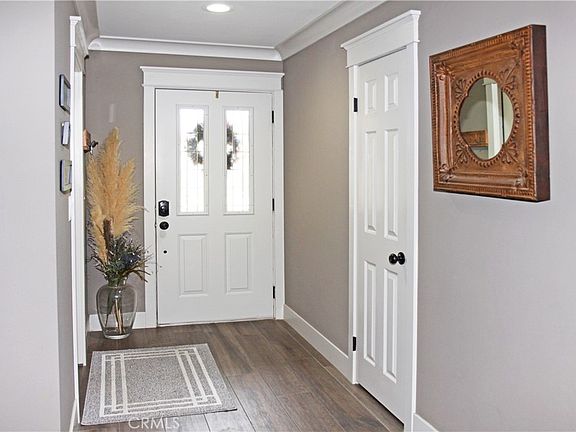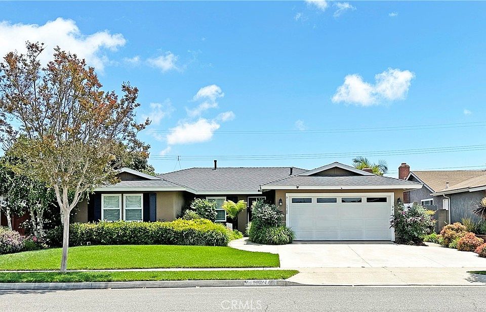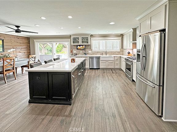 This absolutely stunning, highly upgraded, single-story pool home is located on a prime interior lot in the sought-after Royal Homes neighborhood. It offers top-ranked schools and is only 4 miles away from the beach! The lovely curb appeal is impressive with professional manicured landscaping and an auto sprinkler system in the front and rear yards, plus new 2" facia boards and custom hardscape. The entry and hall ceilings have been raised and a wall removed creating an open concept floor plan. This gorgeous home features newer central A/C and heating system, a new Wi-Fi garage door, and an EV charging station in the garage. Additionally, there is a new electrical panel, a 4-year-new roof, insulated walls and attic, and an attic fan. The backyard is a true oasis and includes a lush lawn, beautiful flowering gardens, new concrete decking, a gazebo covered patio, and a sparkling saltwater pool. The pool has a new heater, pump, plaster, and tile. The yard is fenced with vinyl fencing and gates, and there is also a storage shed. Inside, this model-perfect home has undergone gorgeous remodeling. It boasts porcelain wood-type flooring, recessed lighting, 5" crown molding, 5" baseboards, and custom door/window casements. The entire house has new dual-pane low E Milgard windows and plantation shutters. The kitchen has been completely redesigned and is a chef's dream. It features a large center island with seating, quartz countertops, a designer tile backsplash, Thomasville solid Maple soft-close cabinetry, under-counter lighting, an appliance garage, and a pantry with pull-outs. The kitchen also includes Frigidaire stainless appliances, a pot filler, a touch-less kitchen faucet, a drawer microwave, a wine refrigerator, and USB chargers in the island. The adjacent banquet-size dining room has sliders that lead to the backyard. It boasts a large formal living room with a stone fireplace, and the bathrooms have been remodeled with granite counters, designer tile surrounds, and dual sinks in the master bathroom. The home is equipped with an Arlo security system, a Ring doorbell, pull-down ladder to attic storage, plus tons of built-in storage and a workbench in the garage. Don's miss this opportunity to own this exceptional home that offers luxurious living in a desirable location close to schools, the beach, and all the amenities you desire.