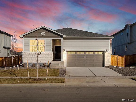 Welcome home to the charming simplicity of the Primrose ranch floor plan by Meritage Homes! This delightful residence offers 1,619 square feet of thoughtfully designed living space, boasting 3 bedrooms, 2 bathrooms, and a covered back patio that beckons you to unwind in style. Step inside, where form meets function in a space carefully crafted for modern living. The Primrose seamlessly blends comfort and efficiency, providing a haven for your everyday life. Meritage Homes goes beyond the basics by incorporating energy efficiency features like advanced framing and spray foam insulation. Experience a home that not only surrounds you with comfort but also contributes to a sustainable and eco-friendly lifestyle. Our commitment to transparency means you'll enjoy affordable quick move-in homes with upfront pricing. The Primrose is a testament to quality and function, where every detail is designed to enhance your living experience. Located in Commerce City, this home offers the perfect balance – away from the hustle and bustle of city life, yet still close enough to Denver and the slopes for those seeking adventure. Discover the charm of Buffalo Highlands, from shopping to outdoor activities, all in your own backyard. Take the next step toward making the Primrose your own oasis. Schedule your showing today! Photos are representative only and are not of the actual home. Actual finishes, elevation, and features may vary.