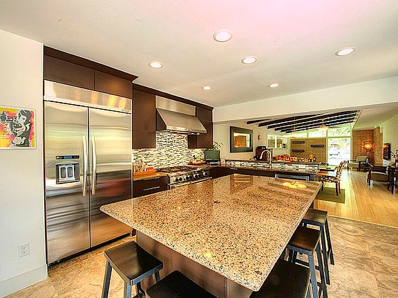 Completely renovated mid-century ranch style house. Separate 1 bedroom garage apartment. Open kitchen with high end stainless steel appliances, including wine fridge, microwave drawer, two sink stations, granite countertops. Master bedroom has his and hers closets. Master bath has open Italian shower with sun tunnel lighting for natural light. Bamboo flooring throughout the bedrooms and living room. Too much to describe. A rare find and a must see.
