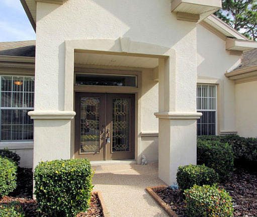 Sought after eastern exposure lanai -- enclosed with acrylic windows. Open, split bedroom floor plan. Double designer entry doors. Living room / dining room combo. Eat-in kitchen with breakfast bar and island. Upgraded kitchen cabinetry with crown molding and pull-outs. Stainless steel appliances. Ceramic tile in the heavy traffic areas; bedrooms and den have carpeting. Two-car plus golf cart garage; key-less entry. Newer HVAC system (2015). Reverse osmosis. Furniture package available. Termite bond.