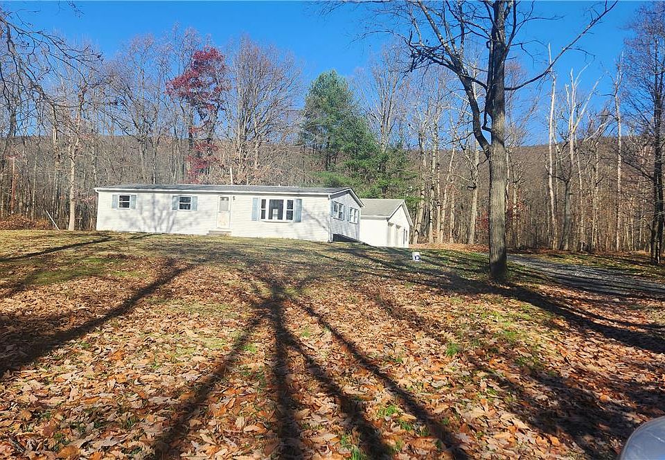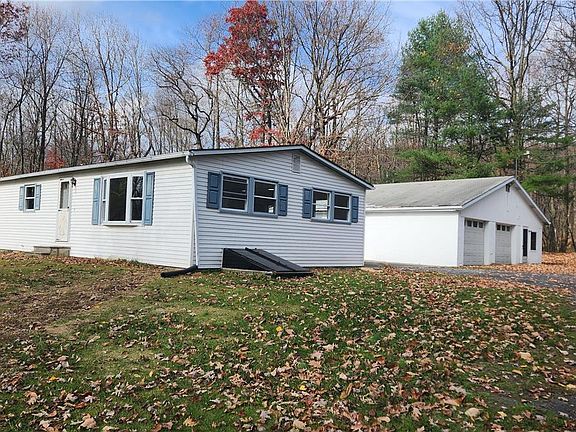 This property provides all the privacy you may want with a newly renovated 3 bedroom 2 bath ranch! But wait, there is a SURPRISE building - attached to the 2-car garage is a one-bedroom living space handy for in-laws or a guest house or a space for your growing children to have their independence! The main house has a modern open-concept floor plan with a kitchen island perfect for stools and flows into the bright living room. There is a new electric water heater, heat, and C/A fueled with propane. -The second building is heated with Kerosene. The house is situated on 15.5 Acres, and included with this sale are 2 - 5 acre parcels alongside
