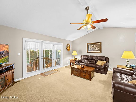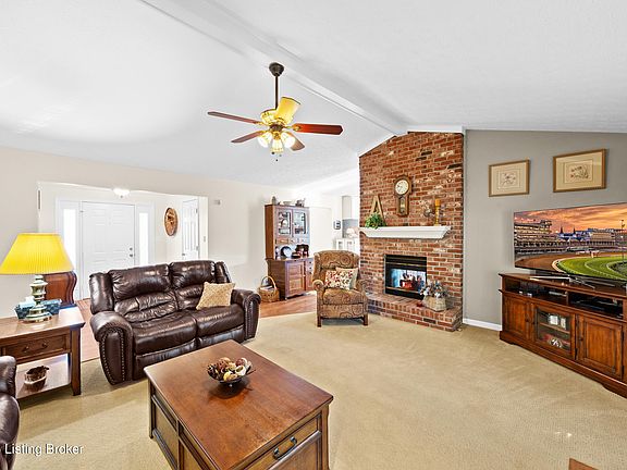 Welcome to 9111 Blowing Tree Dr in desirable Hurstbourne Acres — a beautifully maintained ranch home offering over 1,700 sq ft of thoughtfully designed living space. Step inside to find an inviting layout with a double-sided fireplace shared by the kitchen and great room, where vaulted ceilings create an airy, open feel. The kitchen is a true centerpiece with its tall cabinets, center island, double pantry, abundant natural light from multiple windows, and rich hardwood flooring — ideal for everyday living and entertaining. This split bedroom floor plan provides generous room sizes, including a secondary bedroom with a walk-in closet. The spacious primary suite features two walk-in closets and a private ensuite bath complete with two showers and a double vanity. Extend your living space outdoors on the expansive screened-in porch, perfect for relaxing or hosting gatherings while enjoying the shade of the fully fenced backyard. The finished basement offers a cozy second living room, and with an additional 1,400 sq ft unfinished, there's endless potential for future expansion. This home combines comfort, functionality, and space in a fantastic location close to shopping, dining, and conveniences. Don't miss the chance to make it yours!