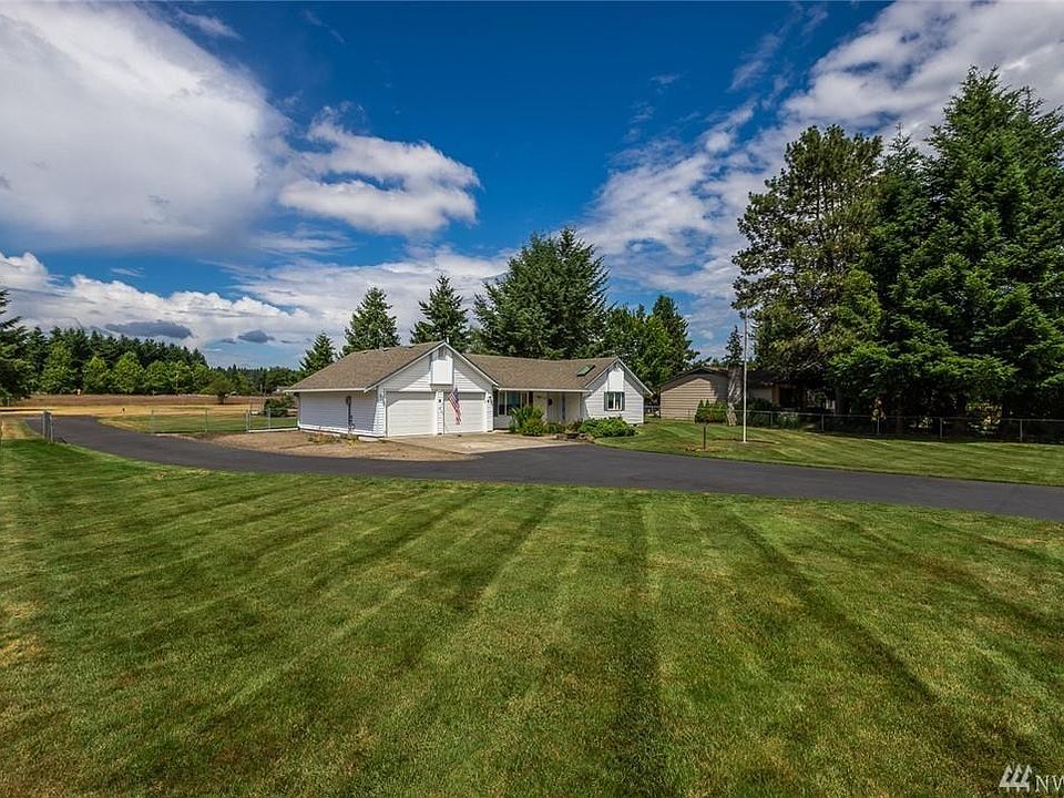 Rambler on 1 acre of land w/HUGE shop & 2 car garage. This beautiful well cared for home is located just outside of city limits. Welcoming wood laminate flooring & upgraded carpet throughout. Open floor plan w/2 large bedrooms 1.75 baths. Skylights throughout home & lots of windows for natural lighting. Completely fenced, Covered patio in backyard, garden area fenced off, Heat pump w/AC, sprinkler system, private well, private septic, Generator hook ups, newer roof, handicap access, no hoa