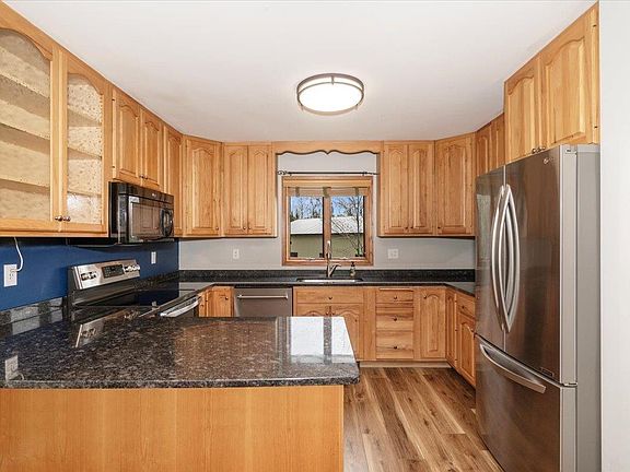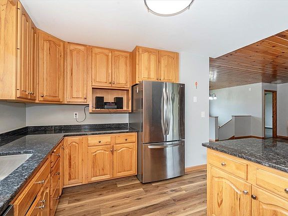 Sitting on 5 picturesque acres at the end of a quiet road, this charming split-level home offers a peaceful escape with lovely views. Boasting three bedrooms and two baths, this residence features recent upgrades including new granite countertops and luxury vinyl plank flooring on the upper level. The interior has been tastefully refreshed with new paint, creating a bright and welcoming atmosphere throughout. A standout feature of this property is the impressive 40 x 60 stick-built garage, constructed in 2020 on a slab foundation. This spacious garage is fully finished with 14 foot insulated walls, and two 13-foot doors—ideal for car enthusiasts, hobbyists, or ample storage needs. Additionally, a 26 x 34 garage, built in 1998, offers even more versatile space for your vehicles or workshop. There is a new on-demand water heater, ensuring convenience and efficiency and a new water softener. The roofs of both the home and garage were replaced in 2020, providing peace of mind for years to come. Located within the desirable Maple School District, this property offers not only a tranquil setting but also access to excellent schools and community amenities. Don't miss this rare opportunity to own a private oasis with ample space and modern comforts. Schedule your showing today and envision the possibilities of making this your dream home!