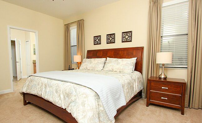 This property is a corporate rental. Please note that the monthly rental price for this property is dynamic and subject to seasonal adjustments. For an accurate quote, provide us with your intended move-in and move-out dates. ChampionsGate Resort Vacation Pool Home - includes resort clubhouse amenity access! Our 8 bedroom, 5 bathroom, private vacation pool home is a great option for families wanting a home base to enjoy the best of all that Central Florida has to offer. * ChampionsGate Resort Private Pool Home Sleeps up to 16 * 8 bedrooms / 5 bathrooms * Private Pool w/ Spa - North Facing * Game Room including Air Hockey, Basketball, and Foosball * Upstairs Loft with Pool Table * ChampionsGate Resort Gated Community * 10 miles to Disney World property * Fully equipped Kitchen with seating for 8 at the dining table, and 5 spots at the breakfast counter BEDROOMS (First Floor) - Master Suite 1 - One King Bed / Attached Bathroom - Master Suite 2 - One King Bed / Attached Bathroom BEDROOMS (Second Floor) - Bedroom 3 - Two Twin Beds / Shared Bathroom - Bedroom 4 - One Queen Bed - Bedroom 5 - One Queen Bed / Shared Bathroom - Bedroom 6 - Two Twin Beds / Shared Bathroom - Bedroom 7 - One King Bed - Bedroom 8 - Two Twin Beds / Shared Bathroom Pool & Spa Charges and Information: There is an additional optional charge of $30 per day plus tax to heat the pool/spa. The spa will not warm up without the added pool heat. Please note that our pools are serviced on a weekly basis. Resort Parking Rules: The resort allows a maximum of 5 cars (or 3 large passenger vans). Do not block the sidewalk or park on the street or the resort will fine you. For visitors, there is a maximum of 10 cars per property. ChampionsGate Resort Amenity Access Included with Rental: We are pleased to offer two clubhouses at Championsgate Resort- this property is located closest to the Oasis Clubhouse It is an 8-minute walk or 2-minute drive to the Oasis clubhouse from this property address. * Huge resort-style pool with pool-side cabanas * Exciting water slide * Relaxing windy lazy river * Interactive children\'s splash park * State-of-the-art fitness center * Movie theatre * The Grille restaurant * full-service restaurant * 18-hole challenging golf course * Pool-side tiki bar * Playground * Volleyball courts Distances from Resort to Shopping & Attractions: * Walt Disney World - 10 miles * Universal Studios - 21 miles * SeaWorld - 18 miles * Orlando Airport - 30 miles * Atlantic Coast Beaches - 78+ miles * Gulf Coast Beaches - 84+ miles * Publix Supermarket - 2 miles * Walmart - 7 miles * Dining - 2 miles Why Choose this Rental? * Professionally managed to serve all your needs * Management company has over 26 years of experience hosting well over 200,000 families * Go straight to your rental with online email check-in * 24/7 on-call maintenance * No Resort Fees * Free On-Site Parking * Smoke-free and pet-free for your comfort * Towels and linens are provided * Complimentary WiFi * Additional Rental items Available (e.g., 3 & 4 burner BBQs, cribs, pack-n-plays, strollers, high chairs, etc.) Our starter welcome packet supplies: * 2 rolls toilet paper per bathroom * 2 round hotel-size bar soap per bathroom * 1 hotel-size shampoo/conditioner per full bathroom * 1 roll paper towel * 1 packet dishwasher detergent * 2 trash bags size-13-gallon * 1 small box laundry detergent (enough for one load) * Garbage can liners in each bedroom/bathroom small garbage cans Any supplies beyond this are up to the guest to replenish, we do not restock these items. No salt/pepper or cleaning supplies are stocked due to safety issues. This is an industry-standard practice. FOR GUESTS WHO BOOK 30 NIGHTS OR LONGER STAYS: (this does not apply if you are staying less than 30 nights) We will collect a $1,500 deposit. Balance is due 60 days prior to arrival If canceled 90 days or more before arrival, we keep with us $250.00. $1,250.00 will be refunded. If canceled between 61 and 89 days prior to arrival, we keep with us the $1,500.00 deposit. No cancellation or modification 60 days or less prior to arrival. Contact us to schedule a showing.