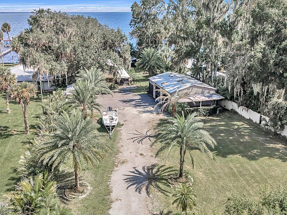 Looking for a WATERFRONT RETREAT ON THE ST JOHNS RIVER w/ 104' on LAKE GEORGE where you feel like you are on vacation year round! Great home or vacation rental. Enjoy magnificient sunrises & waterfront views from the deck or from one of the 3 screen porches! Beautiful 2-story CB & frame home with stone accent & plenty of room for outdoor & indoor entertaining with a hot tub, dock w/ water & electric, boathouse, corrugated fiberglass bulkhead w/ concrete cap & outdoor shower! This home features 2 bedrooms & 1 bath downstairs & 2 bedrooms & 1 bath upstairs both having open concept with large living areas, screen porches & separate HVAC systems. The downstairs has a wrap around porch with center island! The upstairs has a separate exterior entrance as well as an interior entrance. Many possibilities with this property! Need a large shop or mancave? Property includes a 30 x 48 detached garage with (3) 10' roll up doors & screen porch! SELLER FINANCING AVAILABLE