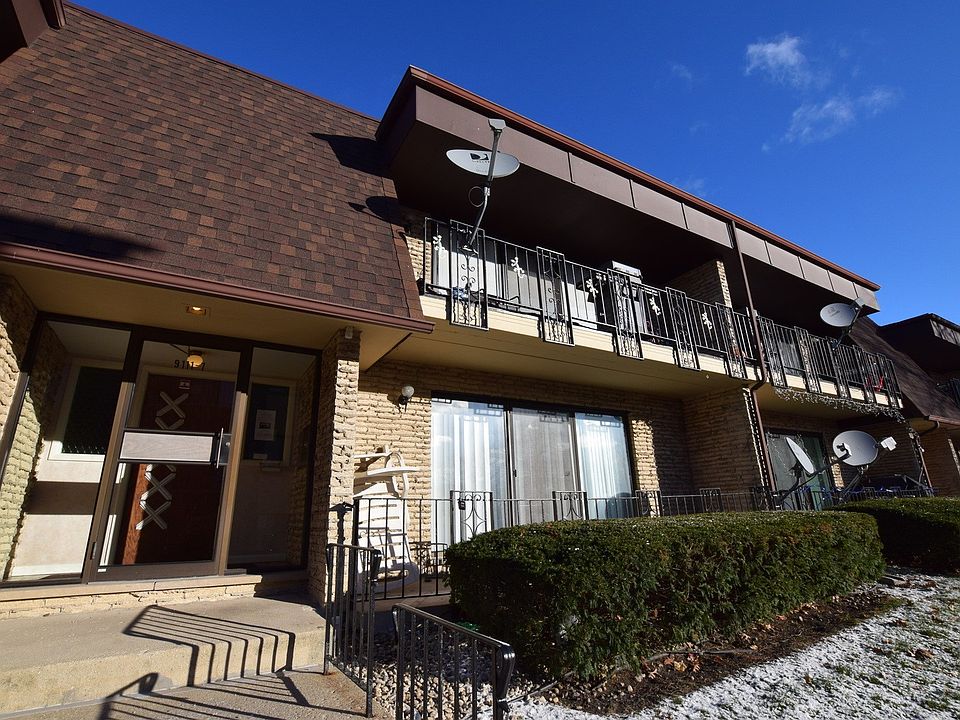 Light and Bright, Updated and Beautiful 2 bedroom/2 bath condo in Hickory Hills! First Floor Unit features Wood Laminate Flooring Throughout. Remodeled Kitchen with White Cabinetry, Stainless Steel Appliances, Granite Counters, Natural Stone Backsplash and Ceramic Tile Flooring. Breakfast Bar/Island with Pendant Lighting. Sliding Doors off Dining Room open to your own Private Balcony. Both Bathrooms completely Re-Done! Step downstairs into Your Own HUGE Laundry/Storage Room. Private Washer/Dryer with New Ceramic Tile floor. Attached 1 Car Garage with 1 Assigned Exterior Space. This Condo has it ALL!