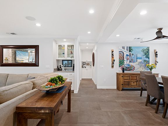 Occupying a coveted position on the front row of Christine Drive, 9112 Christine Drive is one of the very few homes in South Huntington Beach offering unobstructed views of the wetlands and ocean. This show stopping property was taken completely down to the studs in 2020 and finished with only the finest attention to detail. Upon entering the home, you are greeted with an inviting open floor plan, imported Italian porcelain tile floors and an enormous stacked stone hearth and fireplace. With a kitchen fit for a chef, you will find white-shaker soft-close cabinets, ample storage room, beautiful granite counters and high-quality stainless-steel appliances. The property features an eminently livable 3 bedroom and 2 bath single-level layout with en-suite bath in the master. Both bathrooms feature beautiful on trend and custom tile finishes with high quality Hans Grohe fixtures. The master bath features dual vanities, a spacious walk in shower, heated towel rack and bidet. Designed to perfection, the rear yard is an entertainer's paradise offering a stacked stone BBQ island with granite countertops, ample seating, and a built-in Hestan BBQ grill. A raised finished concrete patio with custom fire pit offers the perfect setting for al fresco dining and taking advantage of the serene views across the wetlands at sunset. Offered fully furnished with high quality furnishing from Ethan Allen and other top designers, this property is move in ready. This home is stunning and must be viewed in person to fully appreciate its beauty and attention to detail. 1 year minimum lease - no exceptions. Property is offered fully furnished and at the current price but owners will consider unfurnished as well. Do not email asking for a showing time via the message app.