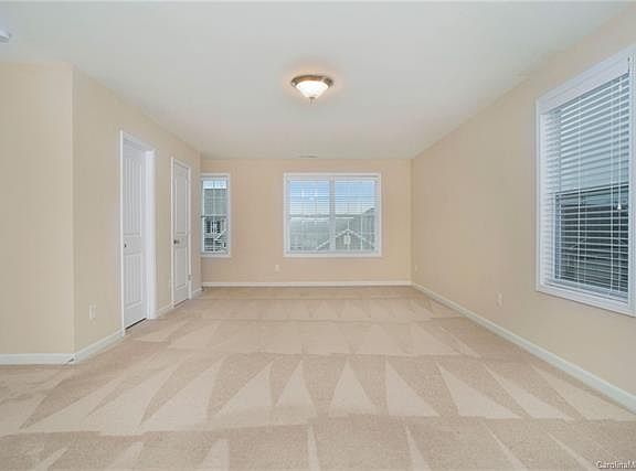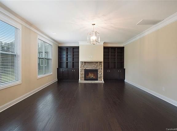 Built in 2014, this Charlotte two-story offers a patio, a fireplace, stainless steel appliances, granite countertops, and a three-car garage. A community pool is part of the HOA.