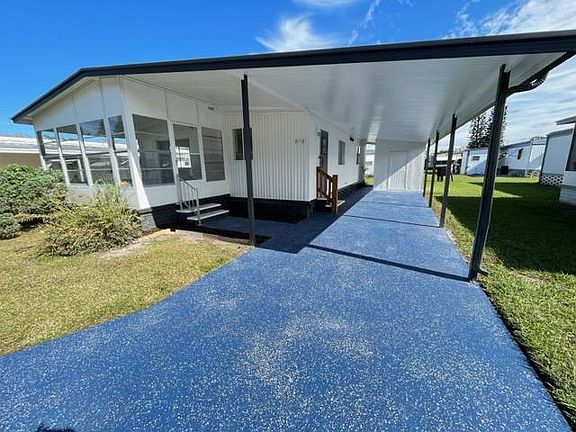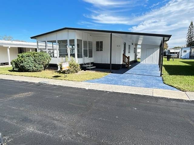 Shalimar Village, tucked in the heart of beautiful Port Richey, is located along the Gulf of Mexico, approximately 40 miles northwest of Tampa and less than 3 miles east of the Atlantic Coast. The community is brimming with great neighbors, abundant indoor and outdoor activities along with beautiful landscaping throughout. There are many amenities including an activities room, billiard table, library with computers, a fitness room, laundry facilities, swimming pool, outdoor firepit, picnic area, horseshoes, shuffleboard, and a spacious clubhouse. Shalimar Village is conveniently located to Tampa's airport and train connections. If you prefer, local bus transportation is easily accessible to the property.The Gulf View Square Mall is less than a mile away and features great shopping, dining, and entertainment. Just two miles away is the Werner Boyce Salt Springs State Park, home to wondrously clear, refreshing springs over 300 feet deep-a birdwatcher's haven where you can paddle the serene inlets and bayous that meander through this amazing salt marsh. This 1979 home has a new roof coating completed in 2022, new subflooring, a new vapor barrier with warranty, new paint in and out, and new vinyl and carpeting installed in 2022. The living room has sliders to the Florida room, is light and bright and is open to the kitchen. The kitchen features new counters, updated cabinets, and an open floor plan. There is a large double pantry, upgraded new tile backsplash, a double stainless steel sink with window above, and a large eat-in kitchen area. The master bedroom is a large room that has been freshly painted and new vinyl flooring. It is light and bright and has a walk-in closet. There is a nice bath ensuite with step-in shower, vinyl flooring, new high toilet, and nice vanity with a new counter. The second bedroom is a large room with new paint and carpet, and a walk-in closet. The guest bath has a tub/shower combo, new toilet, nice vanity with new counter and vinyl flooring. The Florida room is a great bonus space with sliders to the living room, front door entry and has a new decorative tile floor. The driveway has new epoxy completed in 2021. All Florida Mobile Home Sales Inc. cannot guarantee or warrant the accuracy of this information or condition of this property. The buyer assumes full responsibility for obtaining all current rates of lot rent, fees, and pass-on costs. Additionally, the buyer is responsible for obtaining all rules, regulations, pet policies, etc., associated with the community, park, or home from the community/park manager. All Florida Mobile Home Sales Inc is not responsible for quoting of said fees or policies. Lot Rent $750 and includes water, sewer, lawn, and trash.