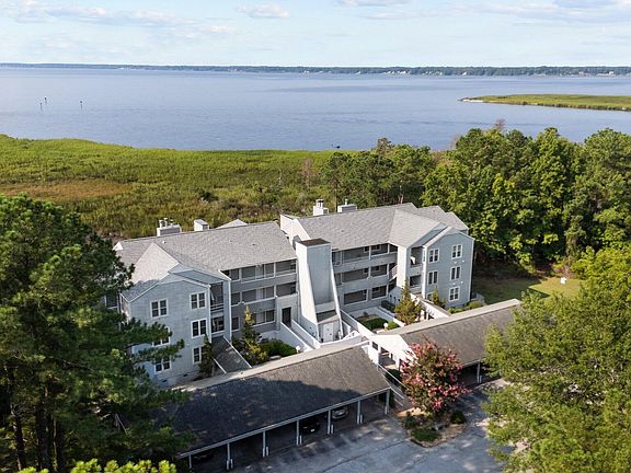 Beautiful view of the Neuse. New kitchen in 2019 including appliances, wine cooler and breakfast bar. Primary BR has a balcony and a bath with walk-in shower and jetted tub. 2nd Balcony off living room. The fireplace in living room is not functional as wood burning. Built in bookcase. There is a private storage room in carport area in front of assigned space. There is additional parking in the lot.