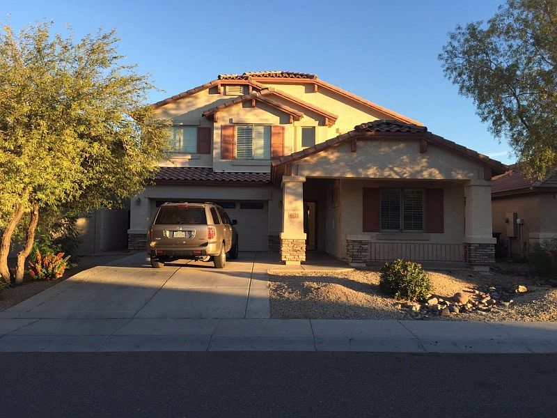 Gorgeous open space with 5 bedrooms and 3 full baths, and both living room and family room , plenty of kitchen cabinets in excellent condition, granite countertops ,kitchen island , stainless steel appliances , tile floor downstairs and in all baths ,a beautiful wrought iron and wooden staircase,one bedroom and full bath and laundry room downstairs,large master bedroom with double sinks ,separate tub, shower and toilet , located close to I10,303,101 freeways , restaurants and shopping Vaulted Ceiling in living room, master bedroom downstairs. Family room, formal dining room, eat in kitchen with kitchen island, pantry