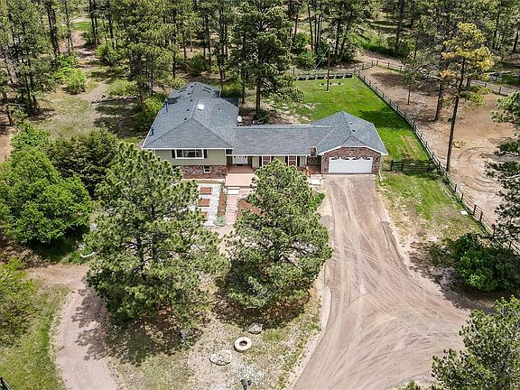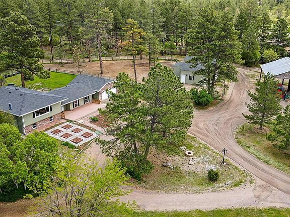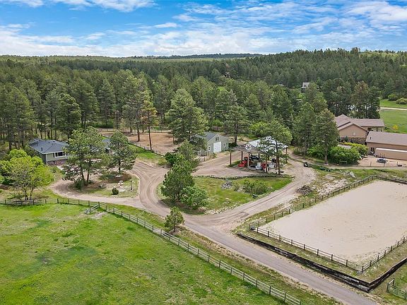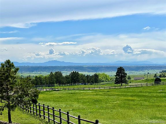 Awesome One of a kind Horse Property on 11.57 AM/L. Trees, Views, Big Meadows/Pastures, an Outdoor Arena with Special Footing. A 4 Stall barn with Turn Outs and a Farm Utility Hay Shed. Every Building and every Pasture has Water and Power. The home sits back against the 100 year old Pine Trees and boast a Fantastic View of "Devils Head" or more commonly known by the locals as, the "Sleeping Indian". Even when the mountains are clouded over you still have the tree lined meadows to enjoy. The 2 Front Pastures have Auto Waterers and 3 Loafing Sheds. This Country Charmer has at least 2 Master Suite Options, a Guest Suite, a 4th Bedroom or Home Office (with a Murphy Bed), a Wide Open Great Room with Gas Fire Place. New Luxury Vinyl Floor Coverings, Remodeled Bathrooms, Freshly Painted in and out. There are endless possibilities and uses for the space. Close to Everything You need. Only 8 miles to Castle Rock or 8 Miles to Elizabeth for Shopping or Dinning, and Douglas County Schools only minutes away. Don't wait to see this Property it is Special !!