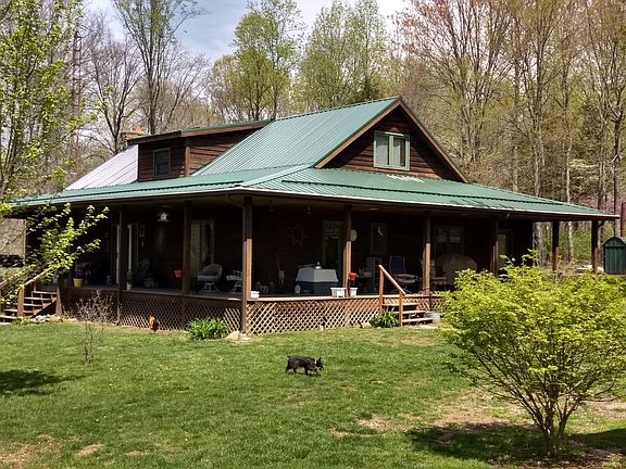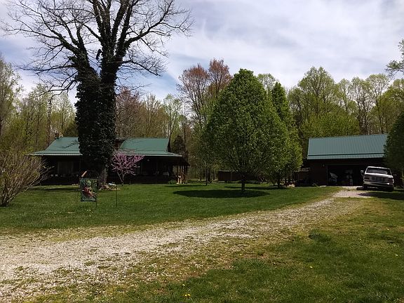 Beautiful private home on a secluded 20 acres with a home warranty! This 3 bedroom, 3 full bath open concept home has a knotty pine vaulted ceiling in the great room, wood burning fireplace, two master suites & 2 sided wrap around porch with a private entrance to master suite downstairs. There is a jacuzzi tub & separate shower in upstairs bathroom. Outdoor wood burning furnace with propane backup. This home has a beautiful pond for fishing & large wooded area for hunting that includes a deer blind towards the back of the property. It also has an oversized 2 car garage with porch & several outbuildings with new fencing. New metal roof & gutters in 2018.All appliances are included. Gorgeous & peaceful setting close to Columbus & Nashville.