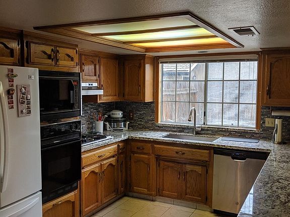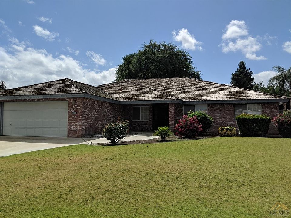 This cozy, Ranch style Home is ready for it's new owner! Gorgeously upgraded kitchen with newer granite counter-tops, newer farm sink and faucet plus tile back-splash. Both bathrooms have newer granite counter-tops, newer sinks, toilets and faucets. You will find brand new carpet in all the bedrooms and the entire house has been recently painted. This home has a spacious living room with a beautiful brick fireplace, double doors leading to the backyard and opens up to the kitchen bar. The bedrooms are huge including the spare rooms and there is a ton of storage in this house, including multiple walk-in closets, cabinets in the hallway, dining room and indoor utility room which has a sink and counter-top as well. Large lot and backyard with a nice covered patio that was built with the house, block wall surrounds most of the backyard with good size side yards. Nice shade in the backyard most the day with a large grass area.Will consider putting a new roof on before the close of escrow.