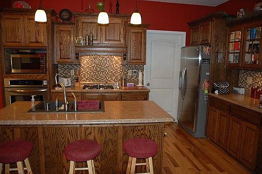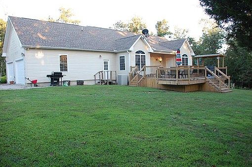 5 Bedroom 3 Bath Contemporary Style Home on 3 Acres. This home has a split open floor plan, formal dining room, kitchen with island and stainless steel appliances. The master suite has a jetted tub, glass walk-in shower and door leading to the deck. The hardwood and tile floors, coffered ceilings, gas fireplace, and arched windows add character to the home. The full finished walkout basement has a family/rec room, wet bar, 2 bedrooms and 1 bath. The outside is just as nice as the inside. There is a fabulous deck and pergola with fire pit. The beautiful landscaping, mature trees and lots of wildlife make this a wonderful place for the person that enjoys the outdoors.
