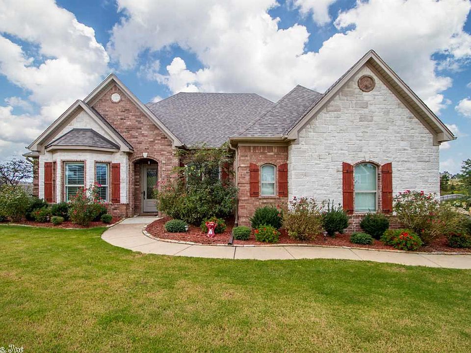 UNDER $350,000 IN STONEHILL ESTATES! 4BR plus office and formal dining. Kitchen w/glazed cabinets, granite countertops, breakfast area and bar. Spacious living room featuring hardwoods, fireplace, and hearth. Private master opens to bathroom w/double vanity, custom shower and HUGE closet w/dresser. Covered back porch and deck with pergola, oversized backyard...over 1 acre! Bryant schools!!