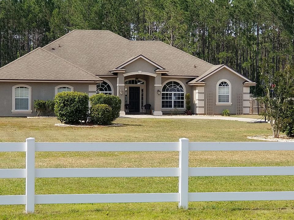 Spacious 3 bedroom, 3 Full baths, plus Study that could be used for 4th bedroom. 3 car garage and an extra 2 car garage out back. Also 2 carports as well. One is a 2 car and the other is a 3 car that could be used for a boat or RV. Plenty of room for your toys on 1 acre. Gorgeous In ground pool with screened in area. Kitchen has Corian counter tops and 42' Maple cabinets. Vinyl, tile and laminate floors throughout. Separate Dining room, Large Master bedroom with beautiful master bath. Walk in Closets. In house laundry. Motivated Seller bring all offers!!! Will not be here long. Set up your showing today!