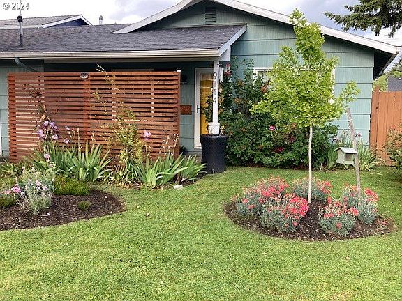 Move right into this updated and improved one-level home in super convenient location. Recent improvements start with new exterior paint and front door. Light living room with original hardwood floors, cozy fireplace and ceiling fan. Kitchen features updated cabinetry, countertops, stainless steel appliances, and eating area with wainscotting. The door through to the garage has been upgraded to fire-rated door. Each of the 3 bedrooms boasts hardwood floors and a large double closet. Enjoy peace of mind in this home that has been meticulously maintained and is in excellent condition. Large covered patio for enjoying warm Spring days or grilling even if the rain persists. The big back deck offers plenty of room for lounging. Raised beds and garden shed add to the functionality of this property. And if that is not enough, the home is on a dead-end street and is just yards away from Northgate Park. Easy access to shopping and major arterials. [Home Energy Score = 4. HES Report at https://rpt.greenbuildingregistry.com/hes/OR10059005]