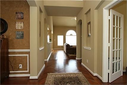 This lovely 5 bedroom home has great curb appeal with professional landscaping & covered front porch. The WOW factor in this home is the custom designed exotic hardwood floors that stretch from the entry through formal dining, study & 2 story family room. Designer paint colors throughout. Home backs to greenbelt which offers plenty of privacy. Walk to Exemplary Hassler Elementary. Community amenities include 3 pools, fitness center, tennis courts, catch & release fishing lakes, dog park & more.