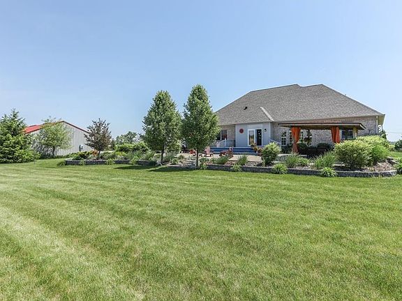 Spacious and beautiful, custom brick ranch on 5 acres. The master suite is fit for a King & Queen with the most amazing master bath. Bamboo floors in the dining room & living room. Granite counter tops in the gourmet kitchen. Space for entertaining in the partial basement. If you have a home business, the office off of the entry way provides a great work space and the 31x63 pole barn offers storage or additional business space. Come enjoy the sunset from the pergola on the patio. BRING AN OFFER!
