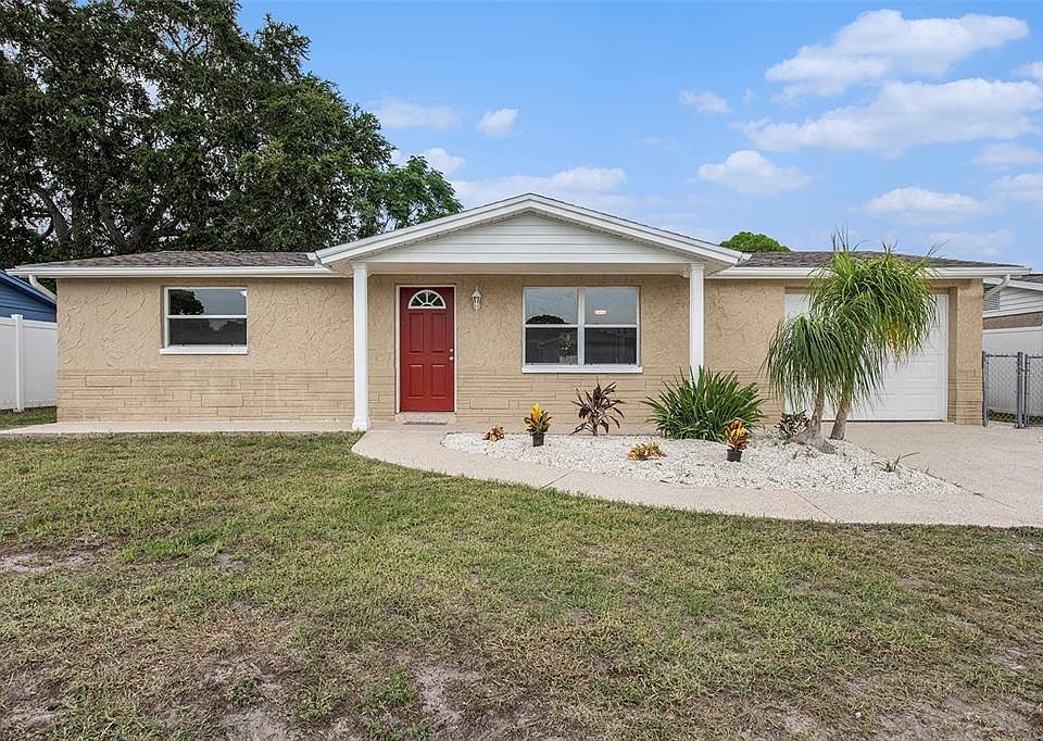 Completely and Professionally remodeled inside and out!!!! This beautifully designed Modern/Traditional three-bedroom, two full bath home boasts many extras. New Modern kitchen with Granite counters, Glass Mosaic backsplash and Stainless sink with Gooseneck faucet along with all New Energy Efficient Stainless Appliances. The High-End Finishes flow throughout the house and into the New beautifully updated bathrooms with custom tile with Glass Mosaic inlays, New fixtures, and Modern Rain Shower, Body Jets and a Water Wand. One bath is a Master En Suite with a stand-up Custom Shower. New Upgraded Doors, Hardware, and Base Moldings. Brand New High End wide plank laminate floors throughout the entire house enhance the warm atmosphere of this home. The Professional Remodeling of this house was not just a face lift. This home has All New updated Switches, Outlets and LED Light Fixtures along with all New Electric Service and Breaker Panel. This home also has Updated Plumbing with New valves, faucets, drains, washer hook ups and a Brand-New Electric Water Heater. This house does not disappoint on curb appeal either. The total remodel of this house also includes a freshly Painted Exterior, and Newly Topsoiled, Seeded and Landscaped Yard with a Newly Epoxied Broadcast Flaked concrete finish around exterior of Home and a New Seashell Plant Bed in the front. This is a Beautifully Renovated House in Port Richey. NO FLOOD ZONE! It is move in ready and WILL NOT LAST!!