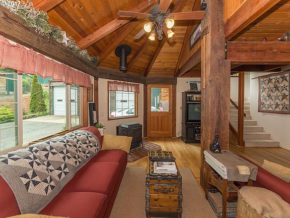 - LivingRoomFeatures: Wood Stove, Wood Floors, Beam Ceilings
