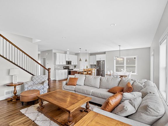 This custom-built 2-story home is filled with gorgeous details and cozy living spaces. The front porch welcomes you up as you step into the open concept main level with beautiful wood floors and plenty of natural light spilling through the many windows. Cozy living room with gas fireplace and built-ins. Gourmet kitchen features granite counters, stainless appliances, tile backsplash, spacious pantry and large island. Main floor office is the perfect spot to work from home. Upstairs you'll find the serene primary suite with vaulted ceilings, views to the backyard, private ensuite bathroom and walk-in custom closet. 3 additional bedrooms upstairs, full bath and laundry room. Unfished basement offers plenty of space to customize and use for all your storage needs. Enjoy the outdoors in the fenced-in backyard with a firepit & the large deck space. Situated on a cul-de-sac in a great neighborhood, this home is a must-see!