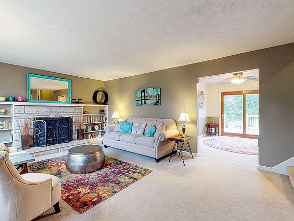 This home is spacious and VERY versatile! There are several rooms that can serve many different purposes: sun / sitting room, office, workout, craft, 4th bedroom ....... The lovely front living room is warm and inviting with a stone fireplace and built in bookcases. An adjacent sitting room overlooks the 2 1/2 acre (approx.) lot. The kitchen is open to the dining area which can hold large tables for all those family gatherings, has a nice bay window, and accesses the covered portion of the deck. On the upper level you will find a huge master bedroom (approx. 20'X12') with 2 closets, another bedroom and a full bath with double sink vanity. The lower level offers so much variety ... there are 2 rooms that can accommodate a variety of uses PLUS a bedroom, full bath, and an awesome family room (approx. 18'X21') that leads out to a covered patio. The outdoor space is just beautiful with great covered and open deck and patio spaces. The large lot is fully fenced and has a barn/outbuilding to store all your lawn equipment plus a 2 car attached garage.