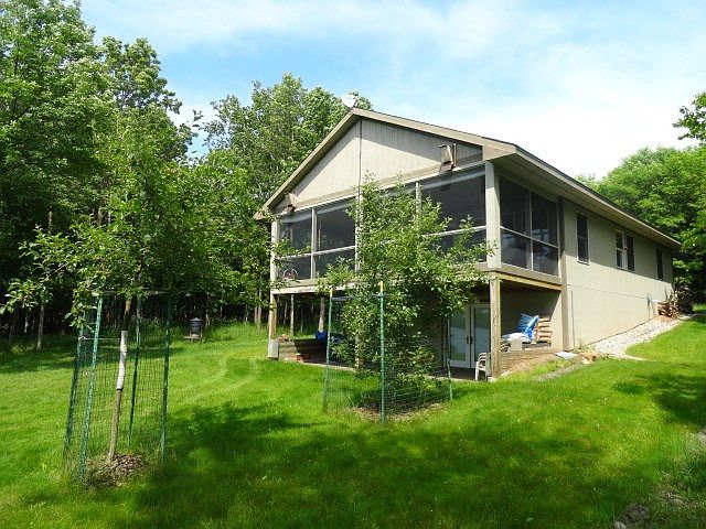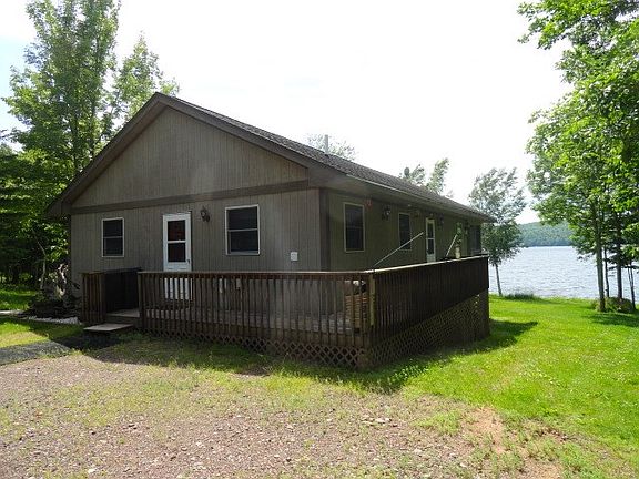 Ranch style home located on 153.85' of Lake Gogebic's east shore frontage. Constructed in 2000 with 2+ bdrms, 2 baths, large living room & kitchen combo, ash flooring thru-out, 12x28 enclosed deck with patio access from the living room. The basement has poured walls and a walk-out to the lake. At the water's edge, you will find a number of apple trees as well as a 40' crank up pier that offers spectacular views of the lake. All this is located on apprx 8 heavily wooded & private acres. Call for more information today! (2016 Tax Info: $2,210, SEV $97,948, Txbl Val $71,415)