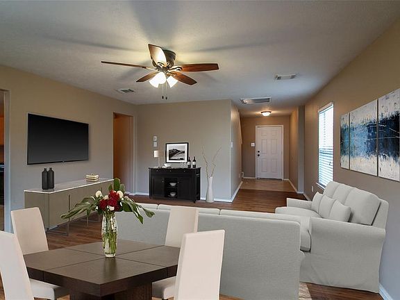 Deerbrook Estates-4 bedroom 2.5 bath,2 car. Huge living room or a living dining room combo. Spacious kitchen with black appliances. Huge master bedroom. All bedrooms up w new ceiling fans. Computer nook upstairs. Utility room upstairs makes laundry tasks a breeze. New carpet throughout. New roof. Covered front porch. No neighbors across the street. This is a dead end block that is being converted to a cul-de sac. End of block has a path to Jones Middle School on Townsend Road. Great location for commuting, restaurants and shopping. roof, new carpet, new ceiling fans